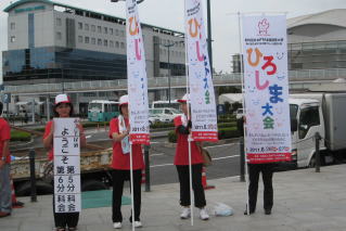 | 約60年に1度順番が回ってくるという日本PTA全国研究大会が平成23年度広島県で行なわれました。日比崎小学校が、第5分科会の担当になり(尾道市PTA教育フォーラム担当校であった為)、金野実行委員長を中心として、各部会小中連携し、準備を進めてきました。 尾道で開催された第5分科会には、全国からの参加希望者が多く、きちんとしなければとの思いが高まりました。 8月26日(土)の本番では、朝8時に担当保護者が揃いの赤いTシャツを着て集合し、誘導・受付接待・会場・企画広報それぞれの係に別れ、緊張の中始まりました。 そして大好評のうちに無事終えることができ、充実感を得た保護者が多かったようです。 長い期間の準備は、大変だったと思いますが、本当にお疲れ様でした。 |