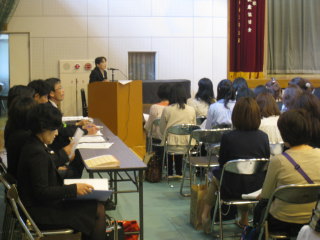 | 4月21日(土) 14:00〜15:00、PTA総会が開催され、議案は全て可決されました。 全員委員になり、委員選出のためにできるだけ多くの保護者の方が出席できるようにする為、そして、話し合いの時間をできるだけ多くとる為に、今年度初めて土曜日に開催するという試みがなされました。 例年より多めに用意した席が満席となり、椅子が足りなくなるほどでした。かつてより検討課題であった「預かり保育」も実施されました。 今年度は日比崎小学校創立60周年の年! 記念事業の概要と収支についての説明があり、PTA会長が保護者へ協力を呼びかけました。 |