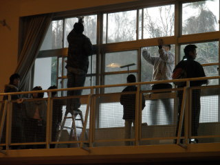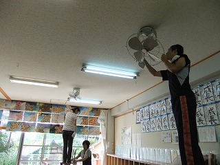 | 夏休みのじりじり陽が照りつける中、多くの保護者・児童が参加して、スクールクリーンが行われました。 みんな汗だくになりながら、日ごろ子ども達だけでは、手の届かない窓や換気扇、体育館などがほこりを落とされ、とてもきれいになりました。 ご協力してくださった皆様、本当にありがとうございました。 |