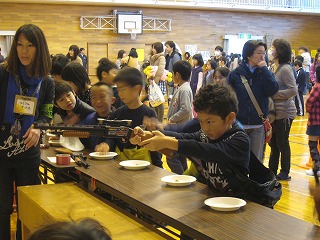 | PTA全員で行う『びびっこフェスティバル』と社協の皆様による『ふれあい健康福祉まつり』が11月最後の日曜日に開催されました。 日比崎小学校のバザーは、昭和59年(1984年)に初めて開催され、形を変えながらも現在まで28年間続けられています。今年度は、創立60周年記念行事として、風船が126個上げられ、風に乗って西の空に飛んでいきました。(ヘリウムガスが全国的に不足しているそうで、無駄をなくすために、急きょ朝学校で膨らませることになりました。) エコ活動も定着してきて、児童もゴミ分別に興味を持って、楽しそうにリパックのビニールをはがす姿が多くみられました 係の方々のご尽力のおかげで、スムーズな運営をすることができました。 チケット集計・作成、ポスター・チラシの作成、模擬店の準備など初めての方も多く苦労もあったと思います。お疲れ様でした。 3連休で、七五三が重なったり、ゲームの景品が予想より、早くなくなったなど課題もありましたが、無事けがもなく、大盛況のうちに終えることができたのも、係の方々をはじめ、教職員・保護者のみなさまの一人一人の大きな力によるものです。ご協力ありがとうございました。 ●風船のお返事が香川県から3通届きました。(南東の方向に飛んでいったのですね)。児童たちは、とっても喜んでいます。良かったですね!! |