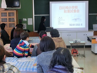 | 12月3日文化委員会主催で、給食試食会が開催されました。 学校栄養士の大岡優衣先生が @学校給食についてA給食調理室の紹介 Bランチルーム給食C尾道の食材・郷土料理についてお話をしてくださいました、 講演の後は、1年生の給食風景を見学し、その後、日比崎小学校のできたての給食をいただきました。やさしい味で栄養たっぷり、大変美味しかったです。 給食の調理の先生から栄養や給食のお話も聞くことができ、食の大切さを改めて考えさせられました。 メニュー ●リッチパン ●かぶのシチュー ●さわやか漬け ●牛乳 ●いちじくジャム |