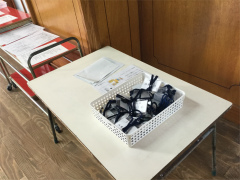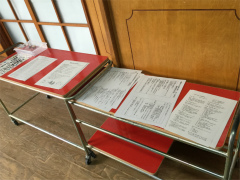 | 子ども達は図書館で | クラス懇談会名札をつけて | 配布物 |