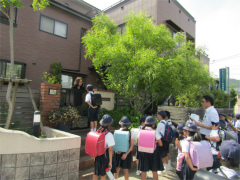 | ・登録されている354軒の中から270軒を訪問させていただきました。 65名の保護者の方にも参加をいただきました。 登校班会で非常時に110番の家に助けを求めることなどを学び、訪問場所の確認を しながらラリーへ出発。訪問したお宅の方々には温かく出迎えていただき、和やかな 雰囲気の中で子ども達は日頃の感謝の気持ちを伝えることができました。 在校児童の家以外にも多くの商店や会社に「子ども110番の家」として登録いただいて おり、地域ぐるみで児童の安全を見守っていただき、大変心強いです。(広報誌ひびざきより) |