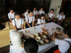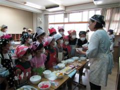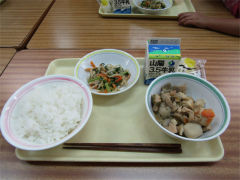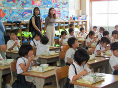 | 今年度も文化委員会主催による給食試食会が行われ、1年生の保護者22名が 参加しました。 栄養士の先生と調理師の先生が、衛生管理を徹底していること、アレルギーへの対応 尾道の郷土料理を献立に入れていることなどを話してくださいました。 また、校長先生が毎日給食前に検査をして、子ども達の安全を守ってくださっている こともわかりました。子ども達は笑顔でモリモリと、とてもおいしそうに食べていました。 (広報誌より) |