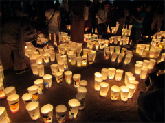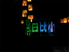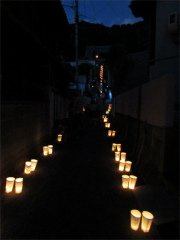 | 第16回灯りまつり 台風19号の影響で開催が心配されましたが、日暮れ前から、地域の方々・保護者・ 児童によって、済法寺の境内と参道に子ども達が作ったぼんぼりが並べられ、一つ一つ 火が灯されました。 子ども達が描いた絵や文字が浮かび上がり、境内をやさしく照らし、幻想的な風景を 作り出していました。 本堂では、茶道部の子ども達がお点前を披露しました。クラブで教わったことを 思い出しながら、お客さまを丁寧にもてなし、和やかな雰囲気のお茶会になしました。 (広報誌より) |