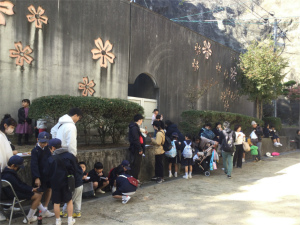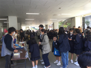 長期にわたり準備の進められてきたひびっこフェスティバルが、11月19日(日)無事大盛況の中開催することが出来ました。当日は晴天に恵まれ、午前中の参観日の後、11:50~マーチングバンド部のファンファーレを合図にオープニングセレモニーが行われ、12:00~いよいよバザーのスタートです。児童会長の「ひびっこフェスティバルは、私たちの誇りです。」という言葉に頑張って引き継いできて良かったという思いが湧きあがりました。