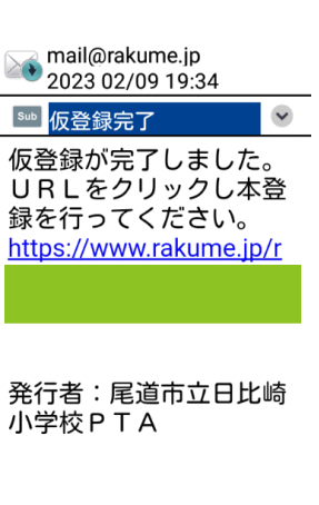 | ②仮登録完了メールが届く ⇒URLをクリック |