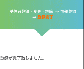 | ③受信者登録・変更・解除画面 下へスクロール ⇒新規登録 ⇒自動でメール画面へ ⇒送信 |