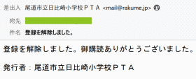 | ⑦登録を削除する場合 プリントに記載のアドレスに 空メールを送付 ※パソコンから登録する場合の 【解除方法】のアドレス ⇒登録解除メールが届く |